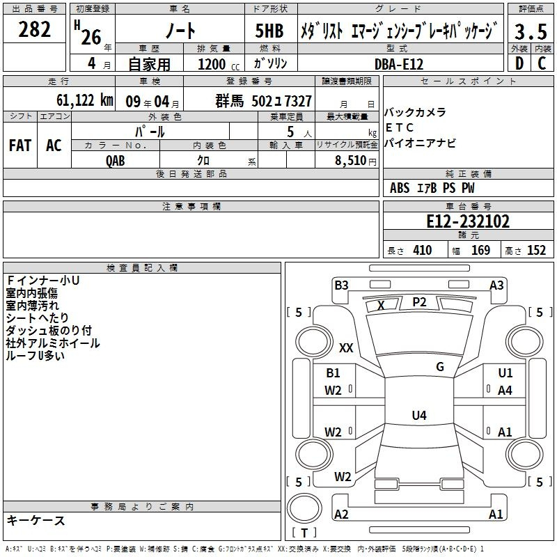 Nissan Note, 2014 года - Лот№282 ★3.5