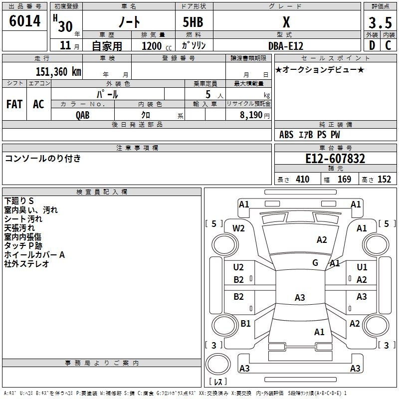 Nissan Note, 2018 года - Лот№6014 ★3.5