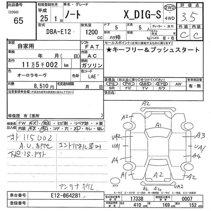 Nissan Note, 2013 года - Лот№65 ★3.5