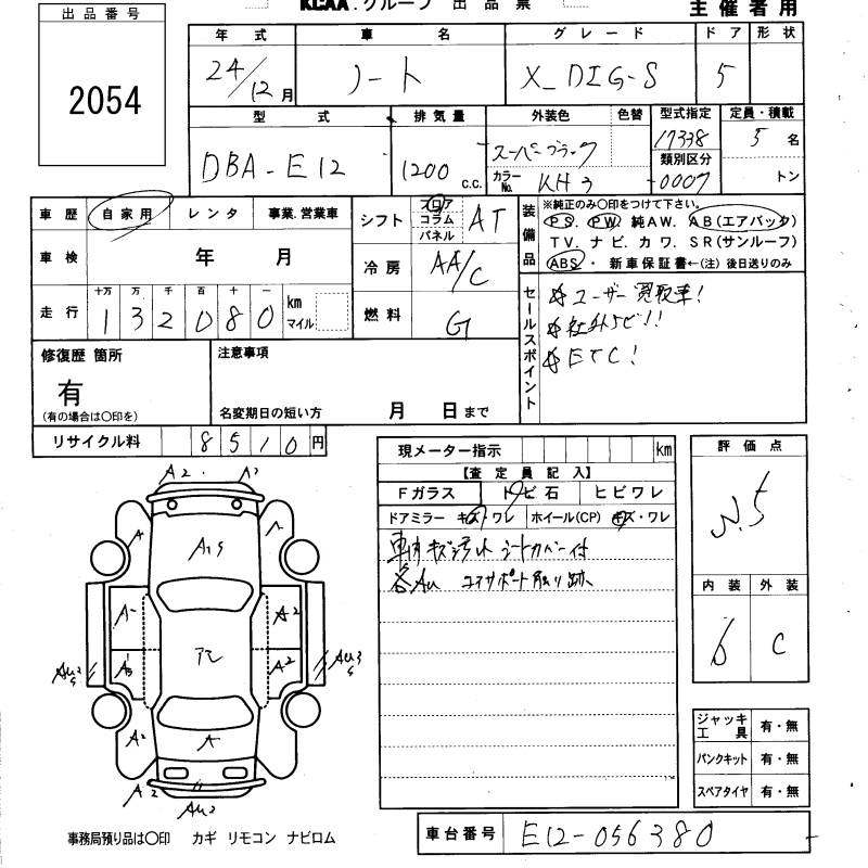 Nissan Note, 2012 года - Лот№2054 ★3.5