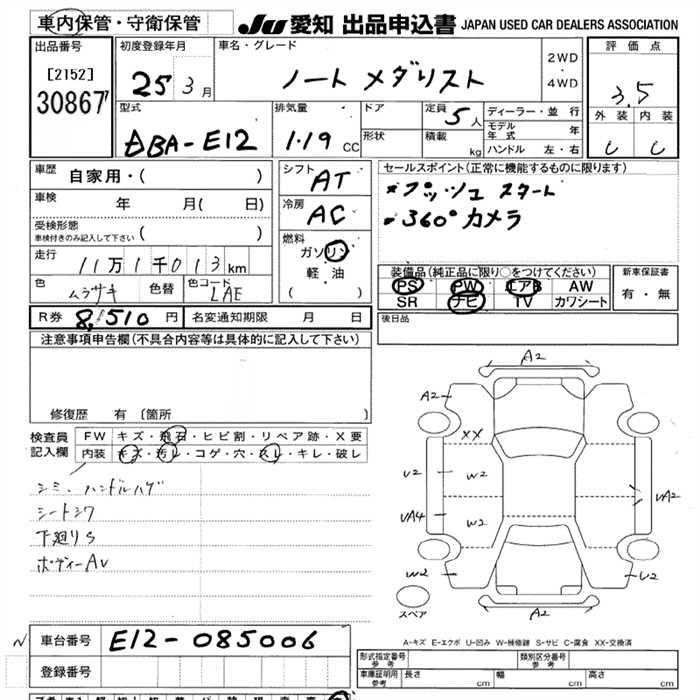 Nissan Note, 2013 года - Лот№30867 ★3.5