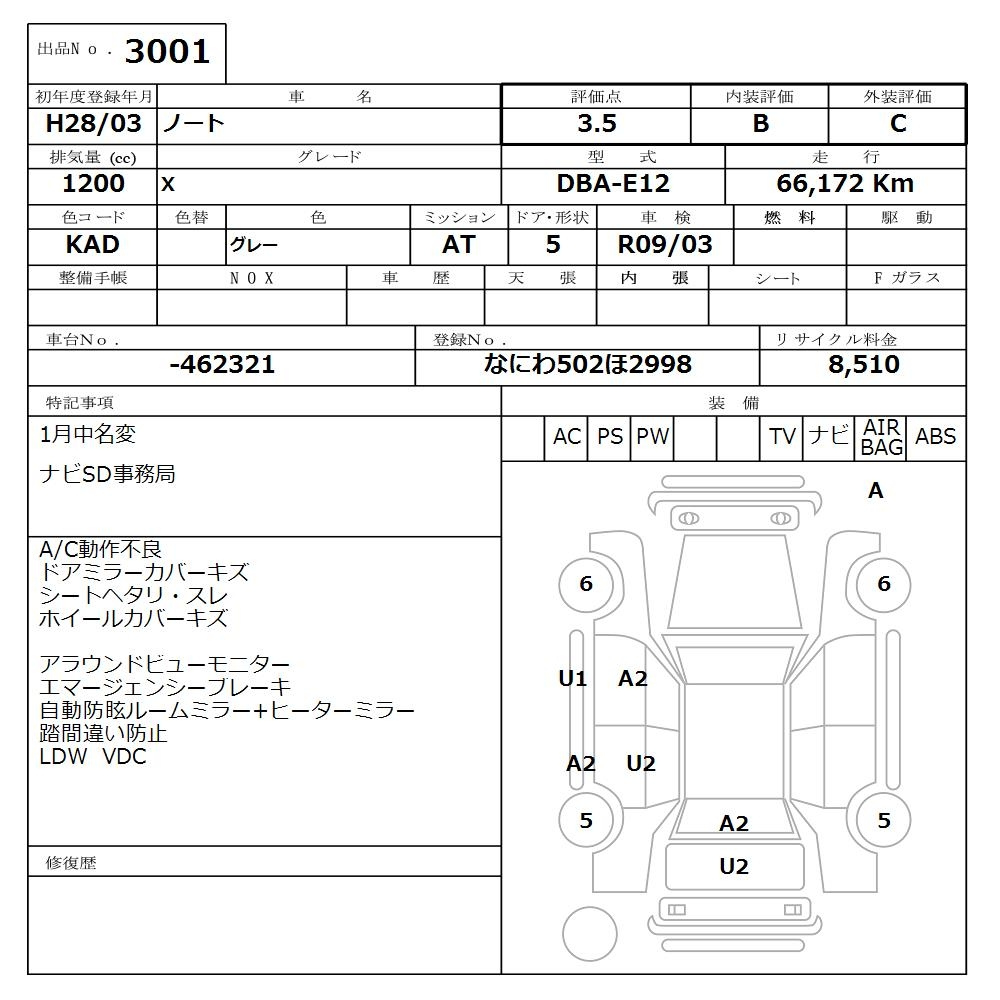 Nissan Note, 2016 года - Лот№3001 ★3.5