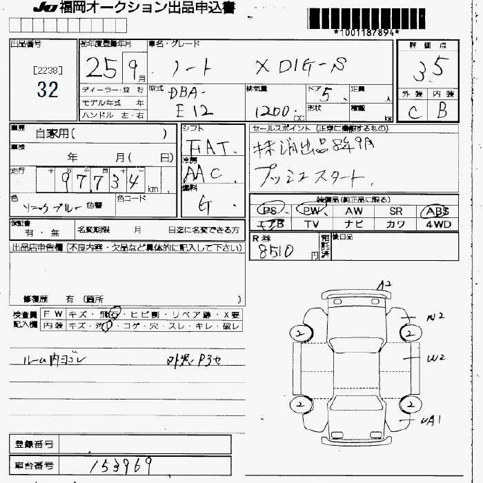 Nissan Note, 2013 года - Лот№32 ★3.5