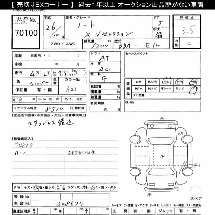 Nissan Note, 2014 года - Лот№70100 ★3.5