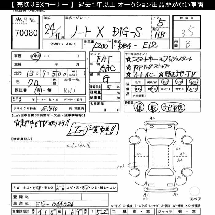 Nissan Note, 2012 года - Лот№70080 ★3.5