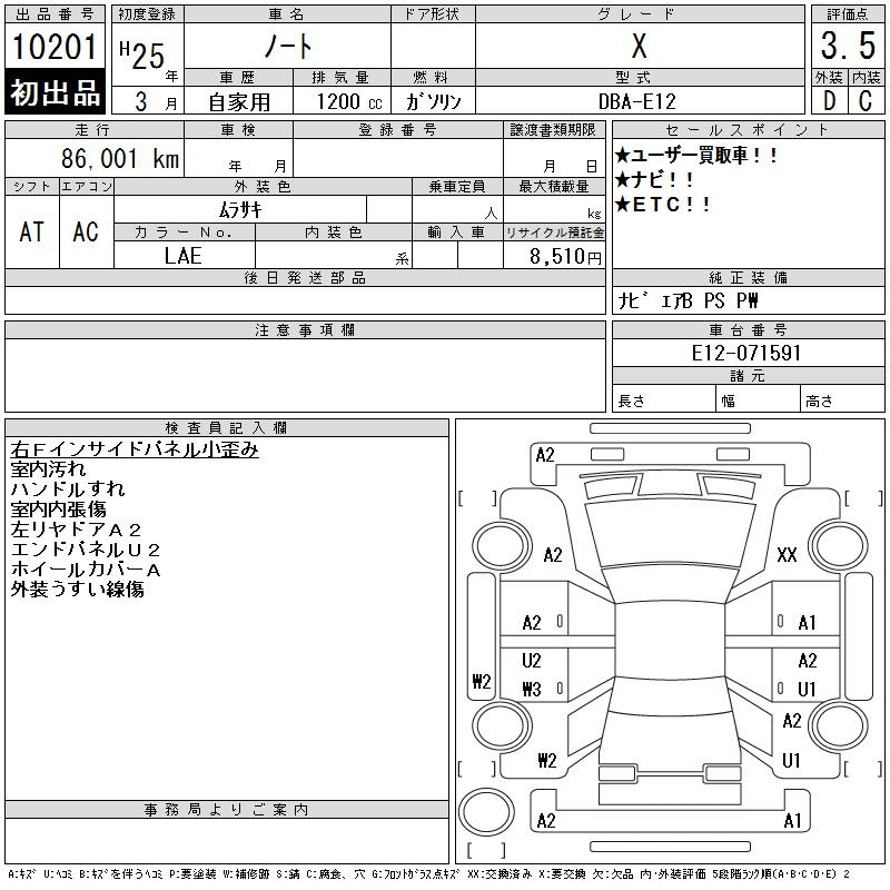 Nissan Note, 2013 года - Лот№10201 ★3.5