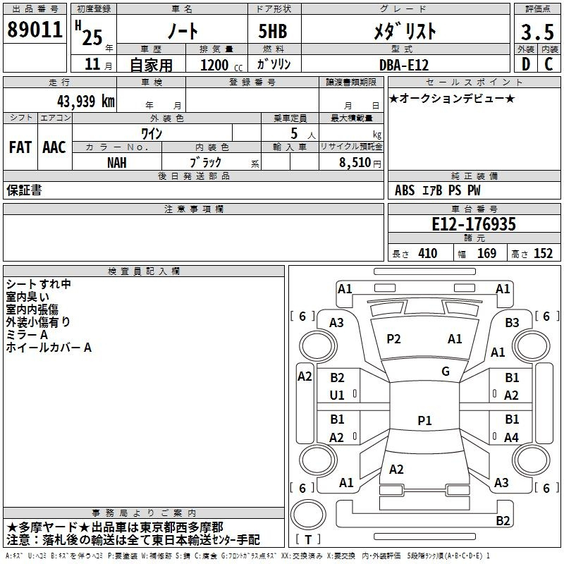 Nissan Note, 2013 года - Лот№89011 ★3.5