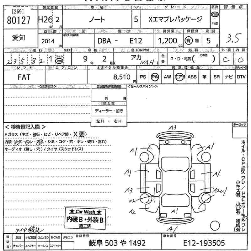 Nissan Note, 2014 года - Лот№80127 ★3.5