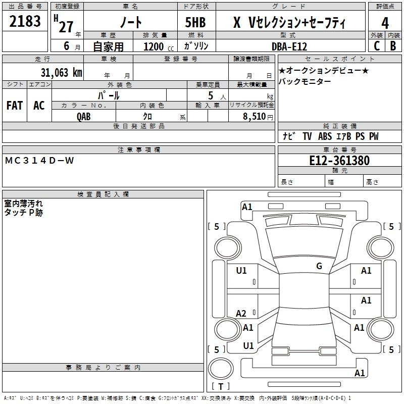 Nissan Note, 2015 года - Лот№2183 ★4
