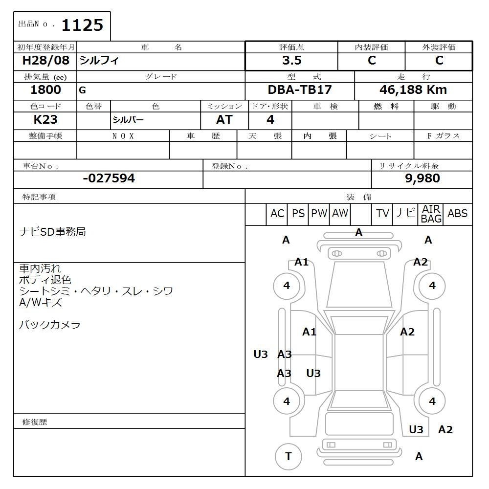 Nissan Sylphy, 2016 года - Лот№1125 ★3.5