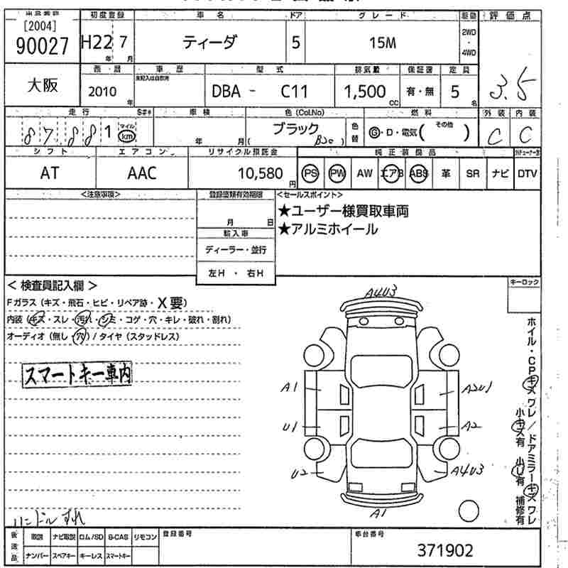 Nissan Tiida, 2010 года - Лот№90027 ★3.5