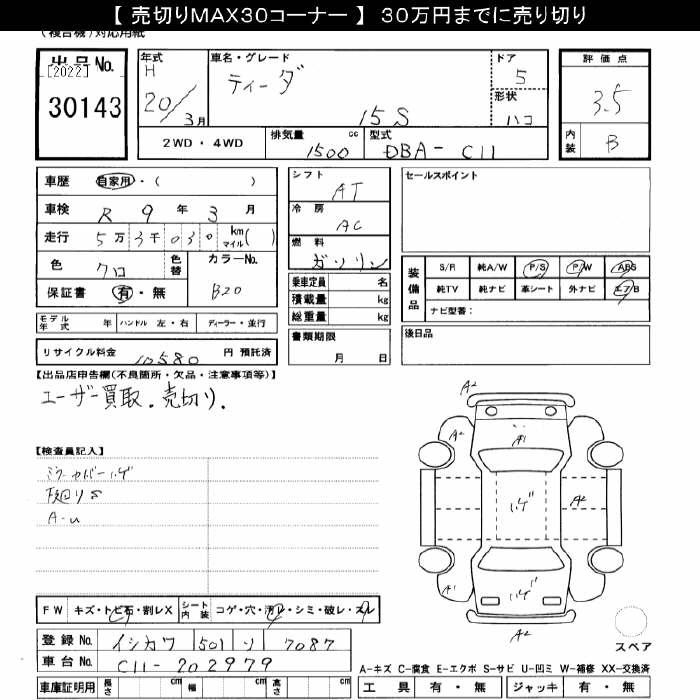Nissan Tiida, 2008 года - Лот№30143 ★3.5