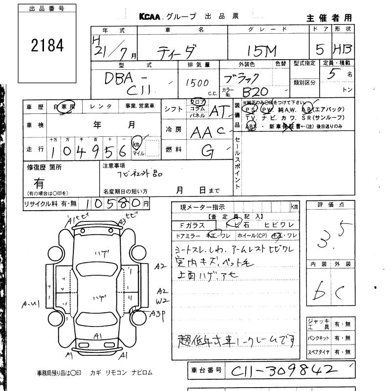 Nissan Tiida, 2009 года - Лот№2184 ★3.5