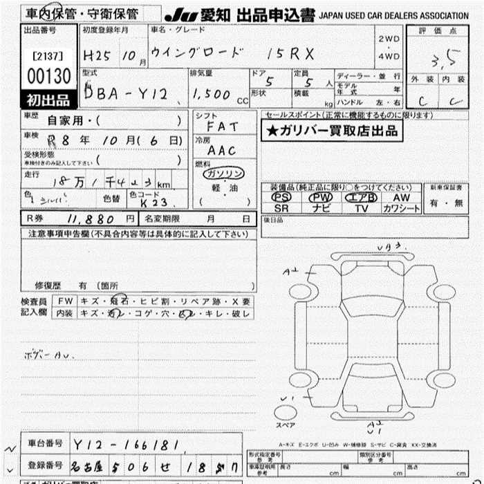 Nissan Wingroad, 2013 года - Лот№130 ★3.5