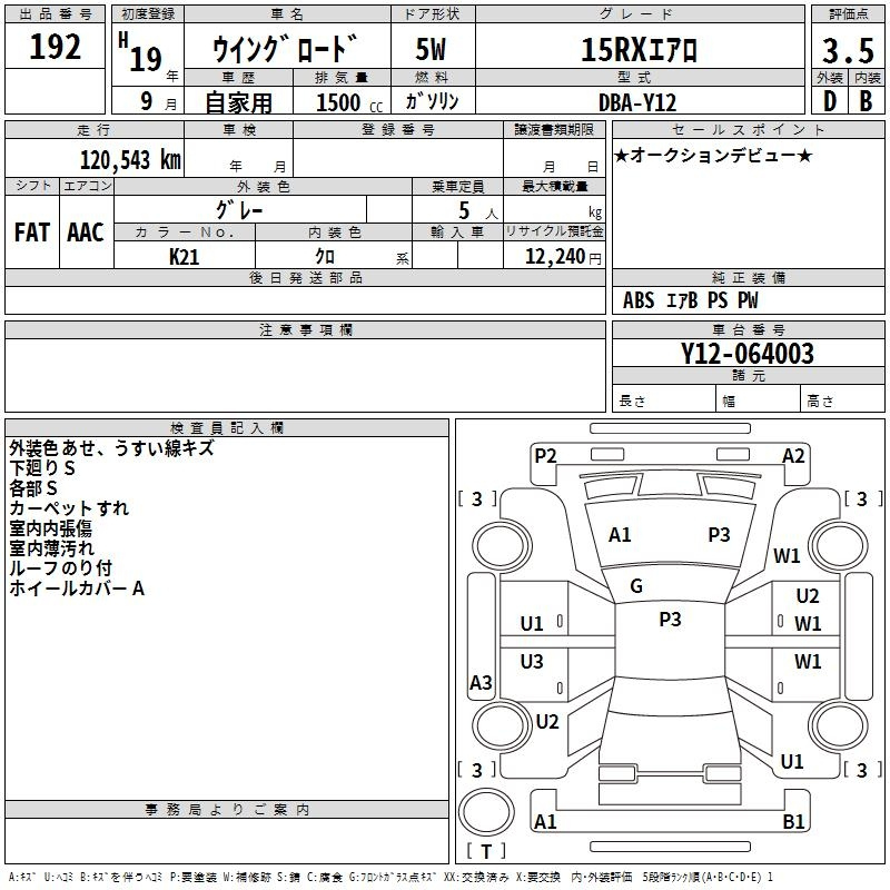 Nissan Wingroad, 2007 года - Лот№192 ★3.5