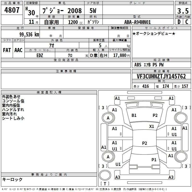 Peugeot 2008, 2018 года - Лот№4807 ★3.5