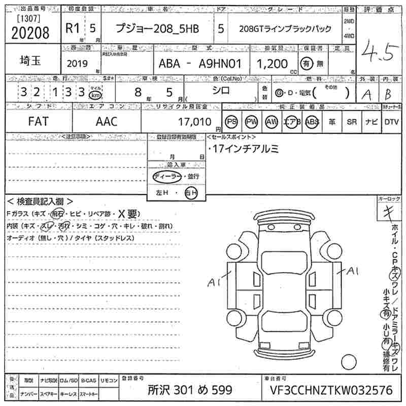 Peugeot 208, 2019 года - Лот№20208 ★4.5