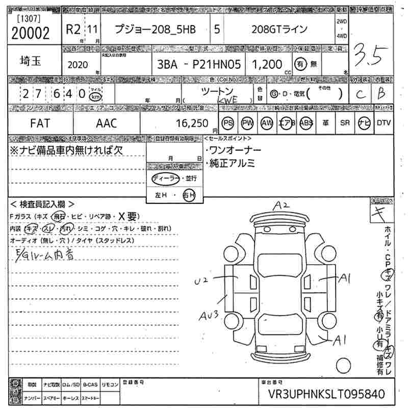 Peugeot 208, 2020 года - Лот№20002 ★3.5