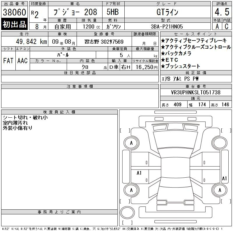 Peugeot 208, 2020 года - Лот№38060 ★4.5