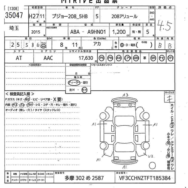 Peugeot 208, 2015 года - Лот№35047 ★4.5