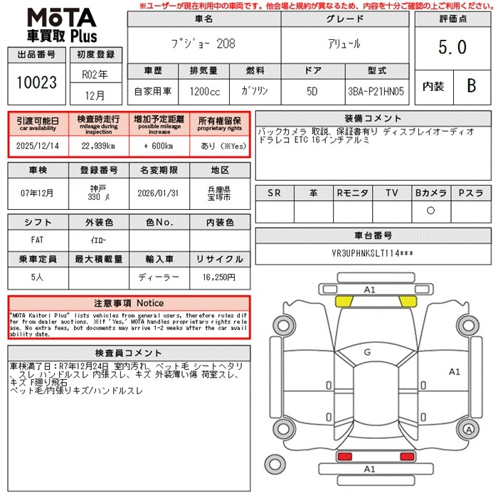 Лот№10023 26 Ноября 2025 года MOTA Kuruma Kaitori