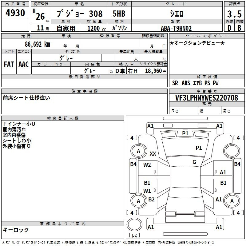 Peugeot 308, 2014 года - Лот№4930 ★3.5