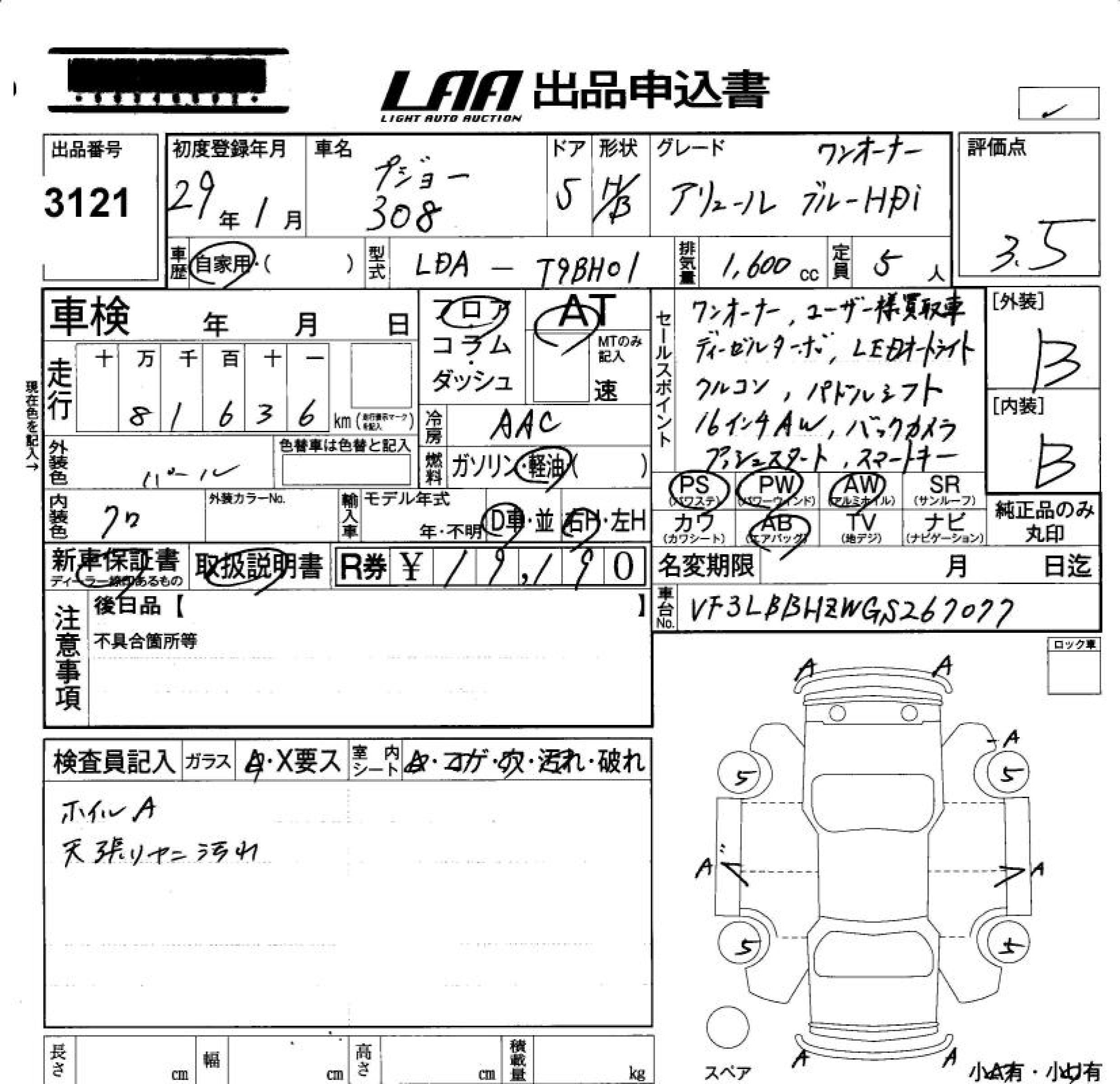 Peugeot 308, 2017 года - Лот№3121 ★3.5