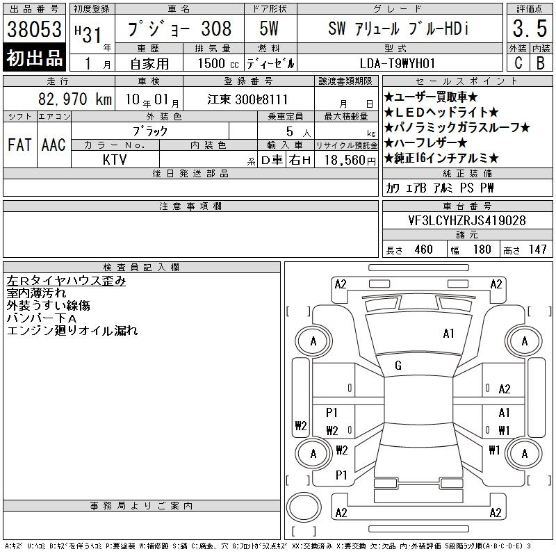 Peugeot 308, 2019 года - Лот№38053 ★3.5