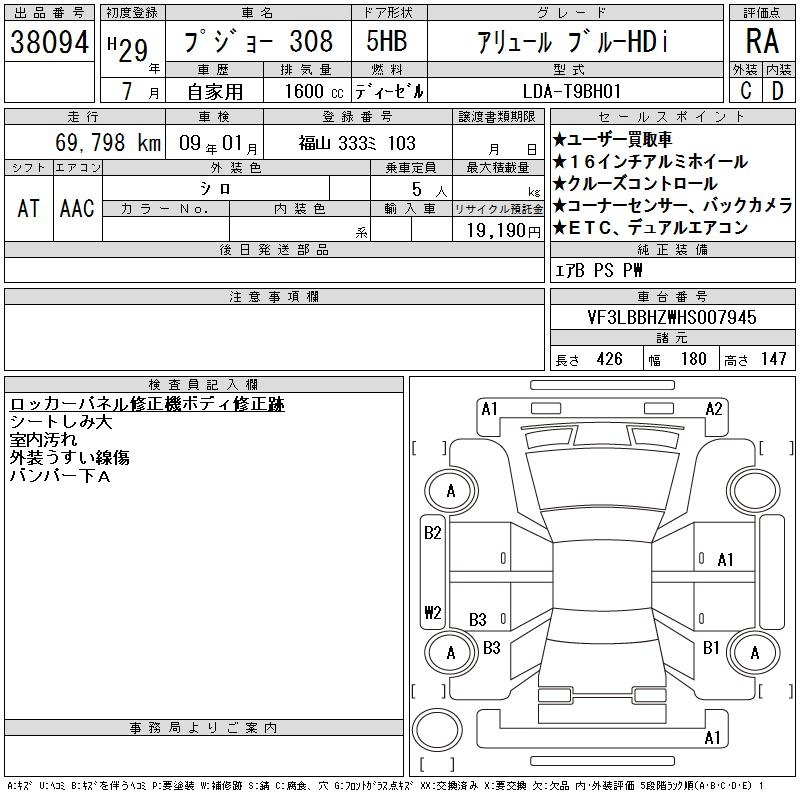 Peugeot 308, 2017 года - Лот№38094 ★RA