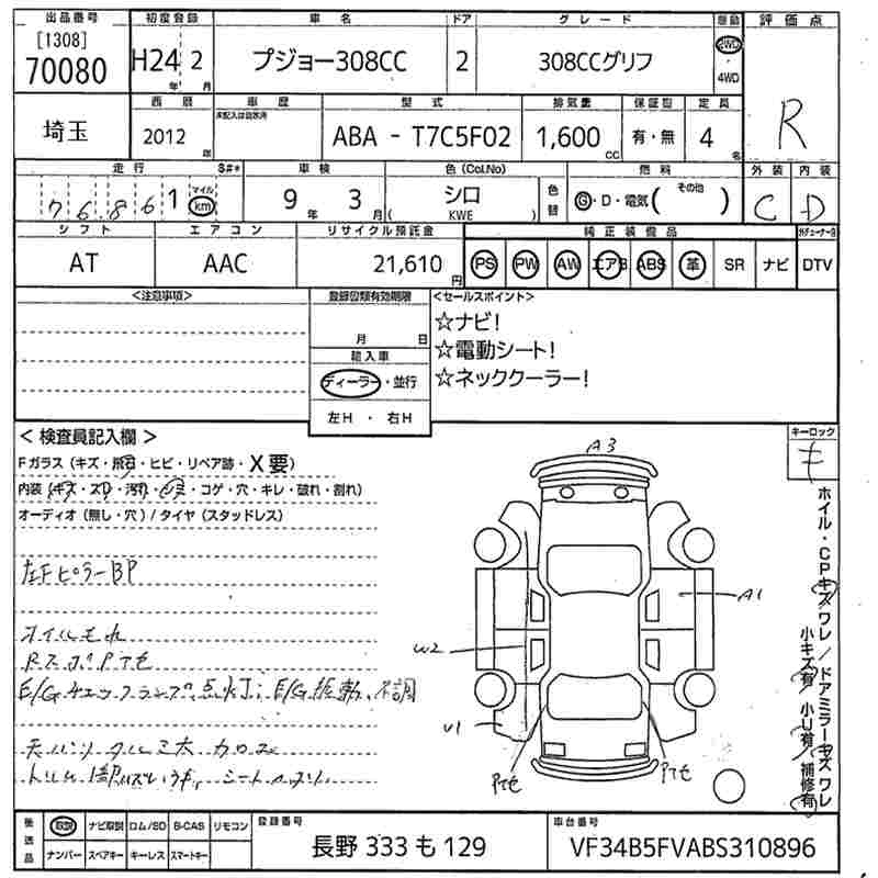 Peugeot 308, 2012 года - Лот№70080 ★R