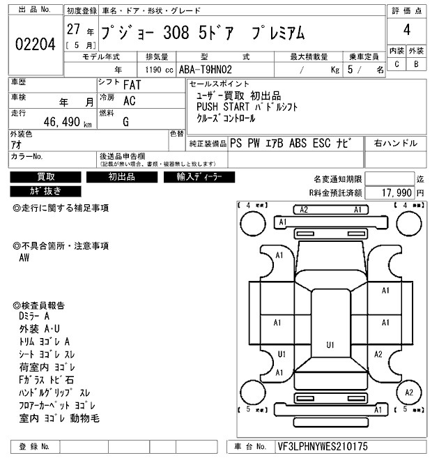 Peugeot 308, 2015 года - Лот№2204 ★4