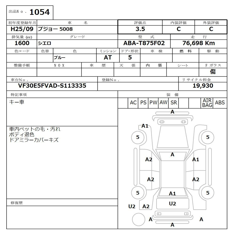 Peugeot 5008, 2013 года - Лот№1054 ★3.5