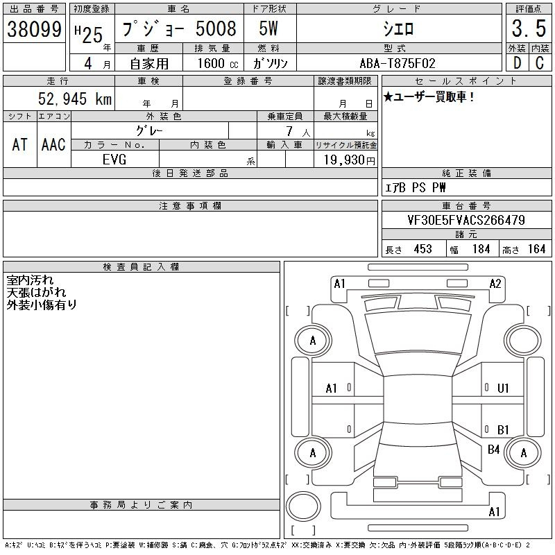 Peugeot 5008, 2013 года - Лот№38099 ★3.5