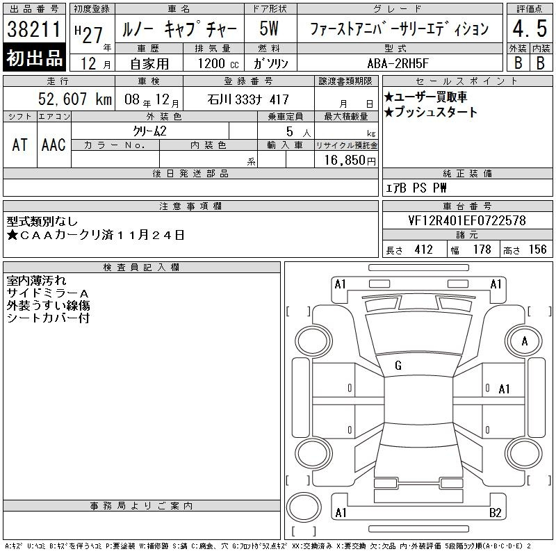 Renault Captur, 2015 года - Лот№38211 ★4.5