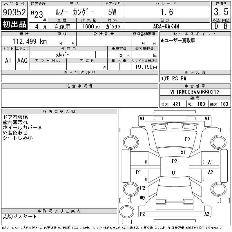 Renault Kangoo, 2011 года - Лот№90352 ★3.5
