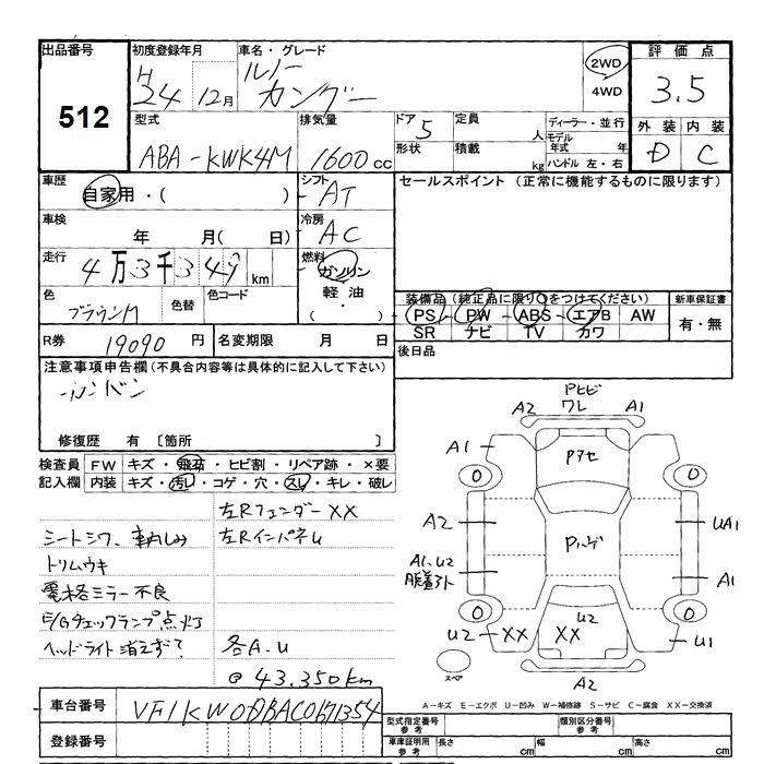 Renault Kangoo, 2012 года - Лот№512 ★3.5