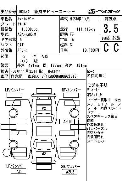 Renault Kangoo, 2011 года - Лот№60054 ★3.5