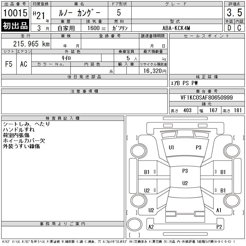 Renault Kangoo, 2009 года - Лот№10015 ★3.5