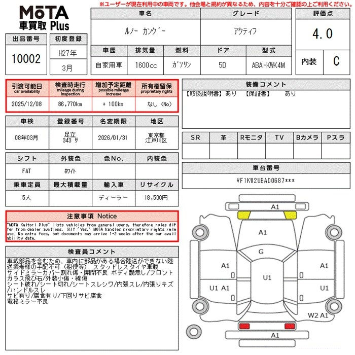 Лот№10002 03 Декабря 2025 года MOTA Kuruma Kaitori