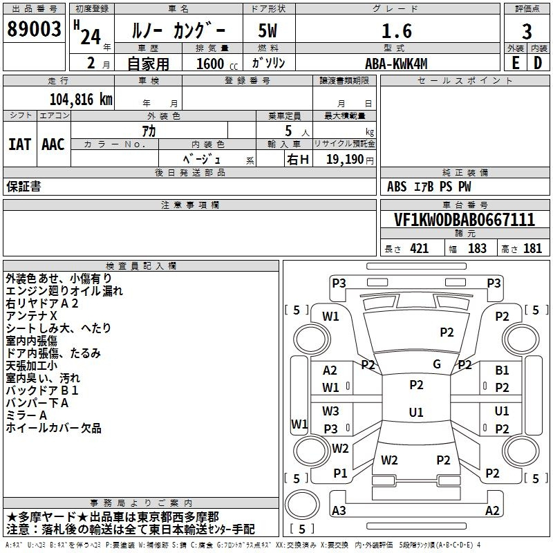 Renault Kangoo, 2012 года - Лот№89003 ★3