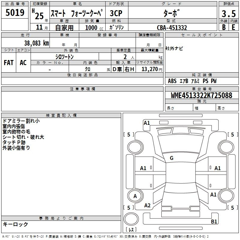 Smart Fortwo, 2013 года - Лот№5019 ★3.5