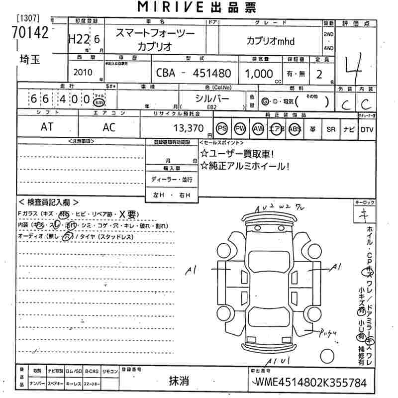 Smart Fortwo, 2010 года - Лот№70142 ★4