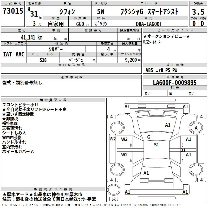 Subaru Chiffon, 2019 года - Лот№73015 ★3.5