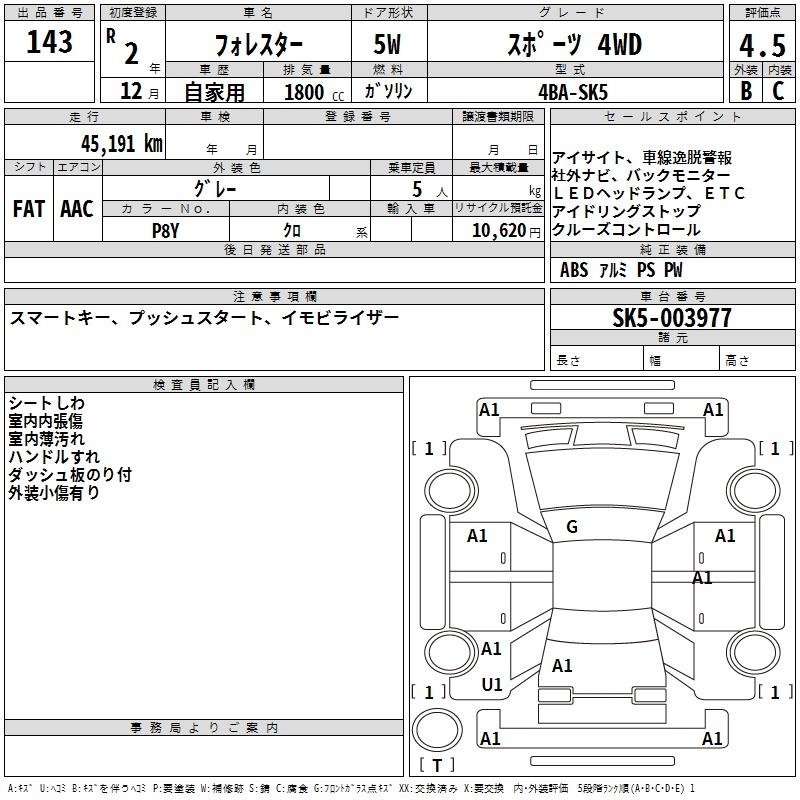 Subaru Forester, 2020 года - Лот№143 ★4.5