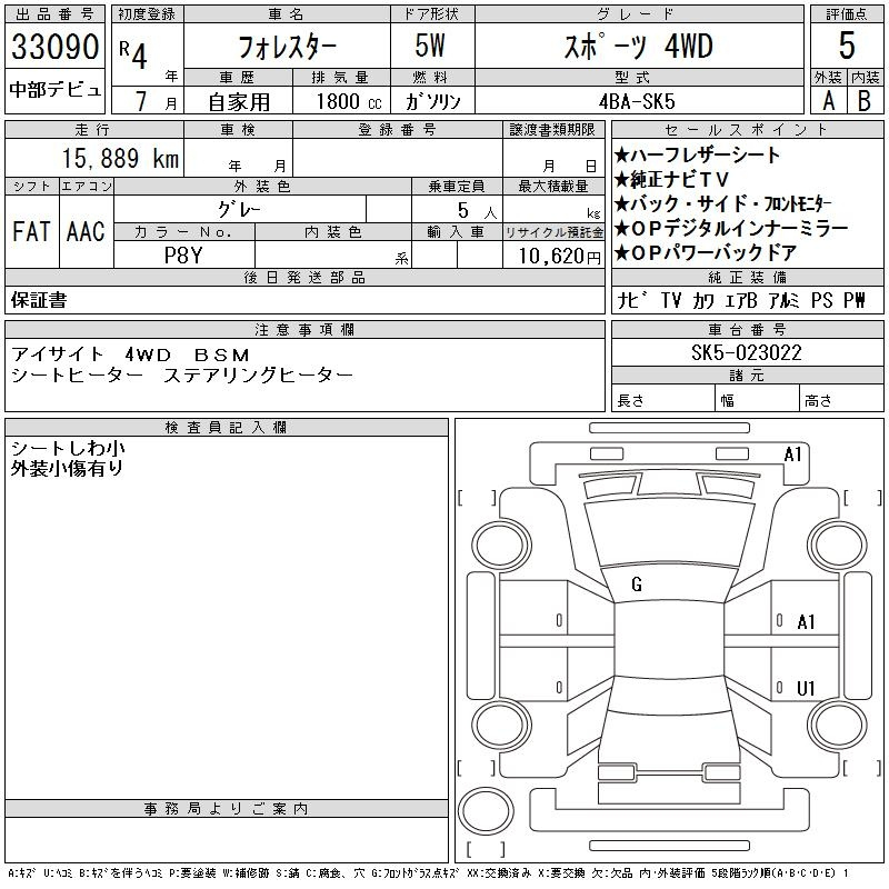 Subaru Forester, 2022 года - Лот№33090 ★5