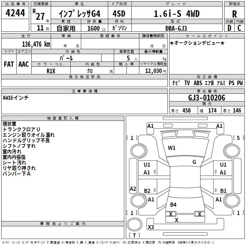 Subaru Impreza g4, 2015 года - Лот№4244 ★R