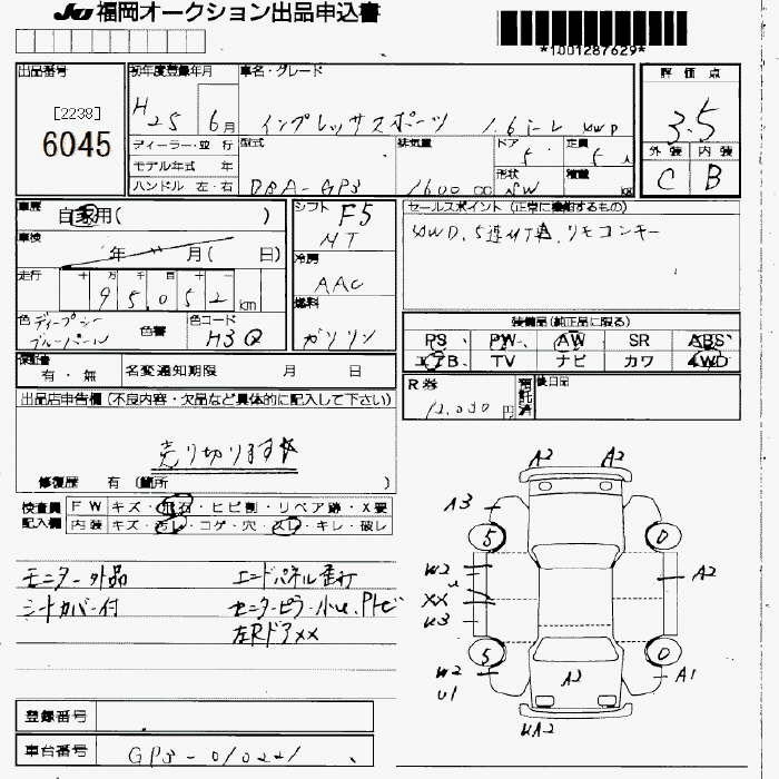 Subaru Impreza, 2013 года - Лот№6045 ★R