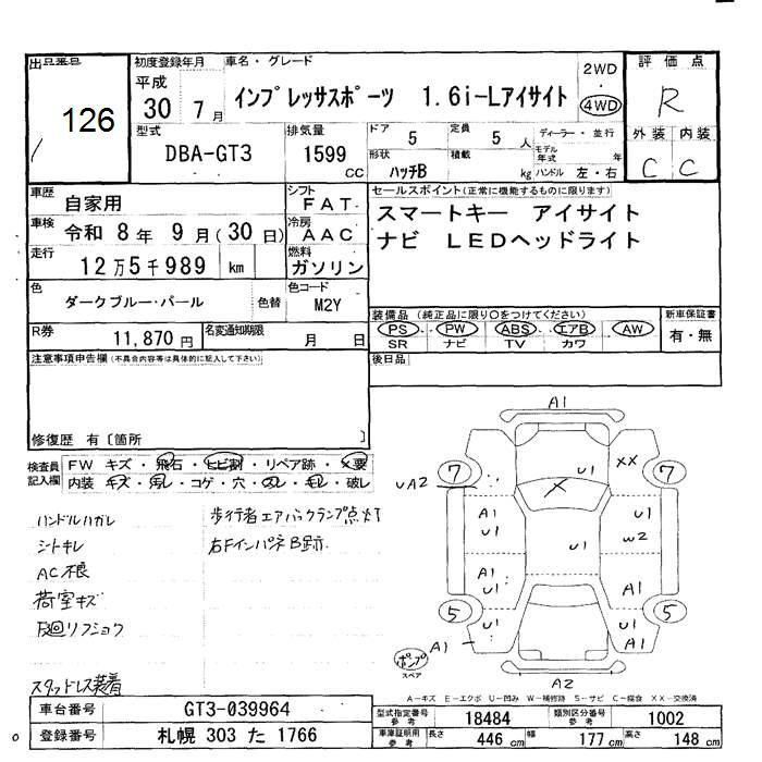 Subaru Impreza, 2018 года - Лот№126 ★R