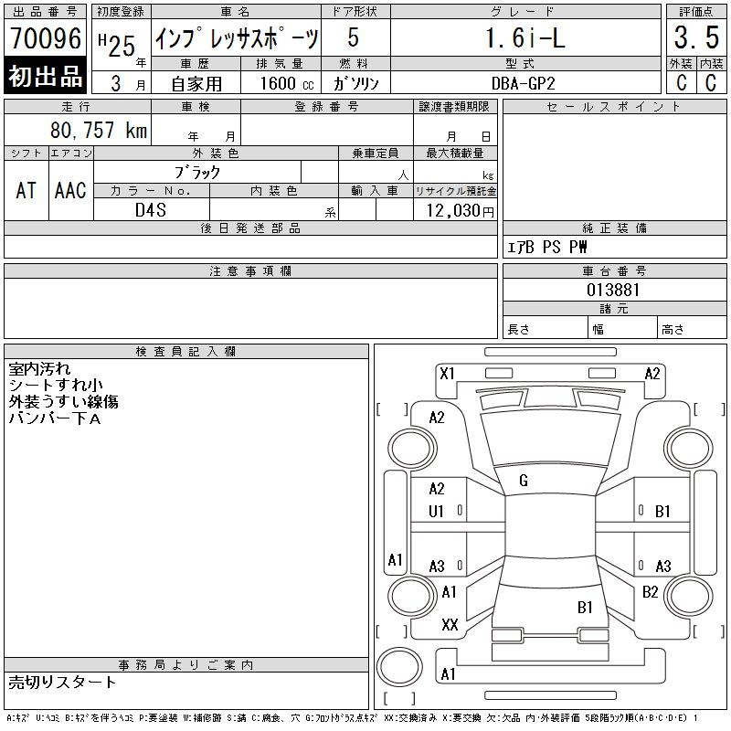 Subaru Impreza, 2013 года - Лот№70096 ★3.5