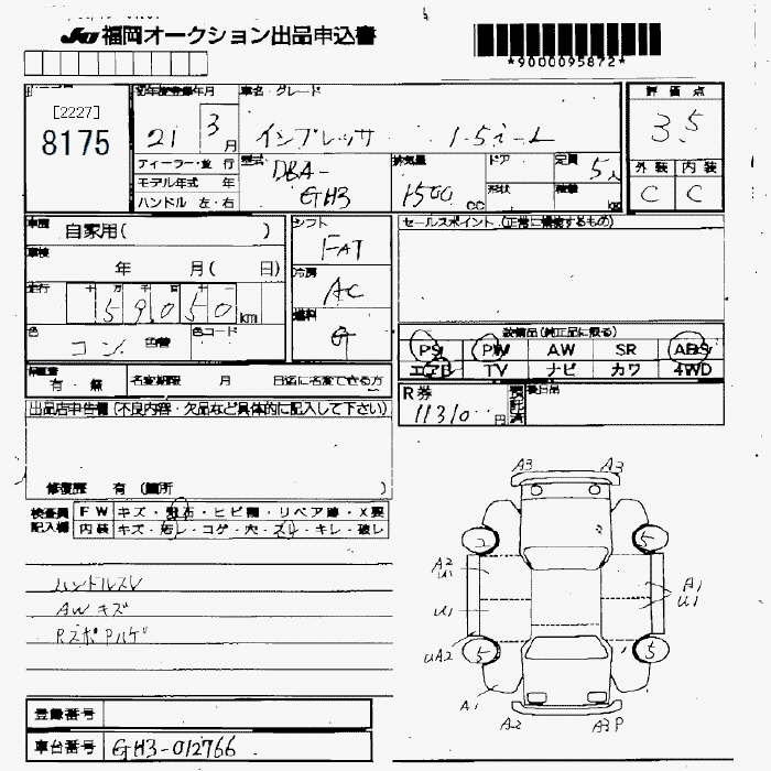 Subaru Impreza, 2009 года - Лот№8175 ★3.5